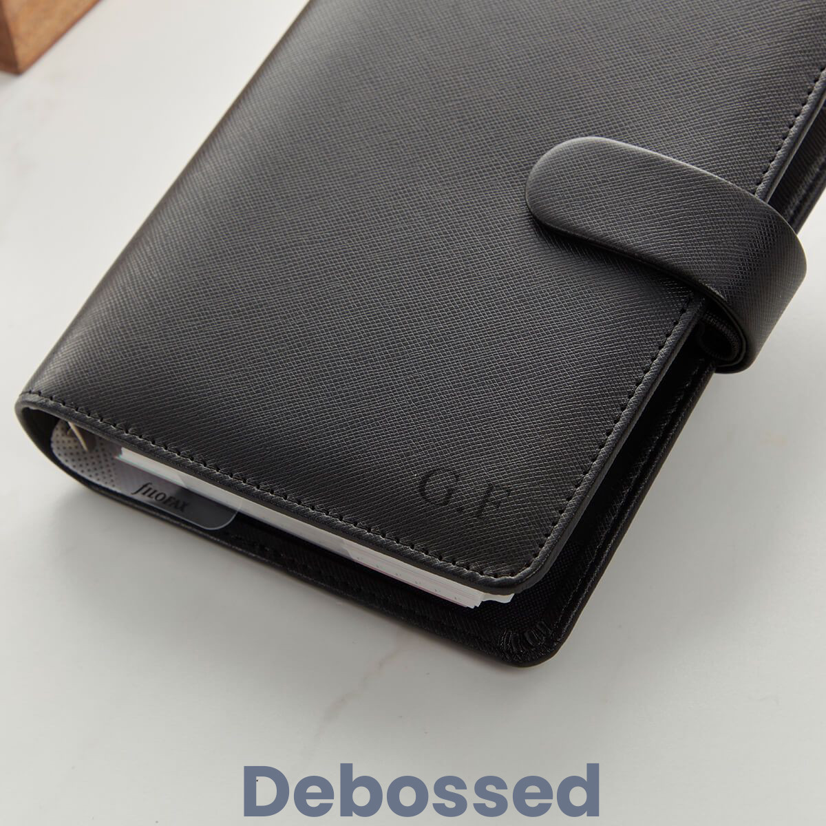 A sleek professional-looking organiser perfect for getting a head start in 2026. This premium quality Filofax comes from their Saffiano collection in black. This makes the ideal gift for a loved one who appreciates a detailed organiser. Add personalisation to this Filofax for a bespoke gift. Personalisation is debossed onto the front cover of the organiser and is available in 3 options, plain, silver and gold.