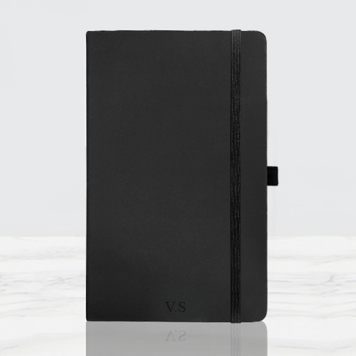To go with this black notebook, the set includes a stylish black pen with chrome trims and a silver barrel, giving it a polished look. These pens are engraved by our in-house experts and can be personalised with a name.