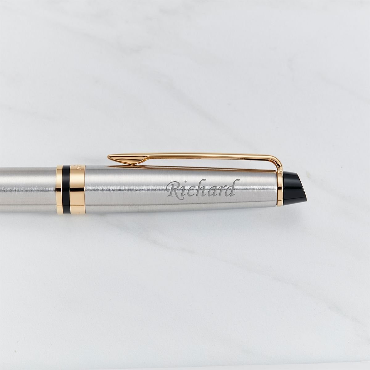 This is not just a pen this is a high-end, luxurious pen perfect for the 'experts' in your life. This is a gift for those who appreciate the fine art of a pen. This Waterman Expert ball pen brings smart Parisian styling to the everyday. This lightweight pen is finished with brushed stainless steel body, gleaming 23-karat golden trim, and broad ring embellished with the brand name