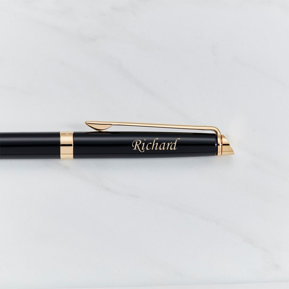 Choose the font from the dropdown menu above, then press 'personalise this gift'. All of our Waterman pens are laser engraved in house at our Nottingham workshop.