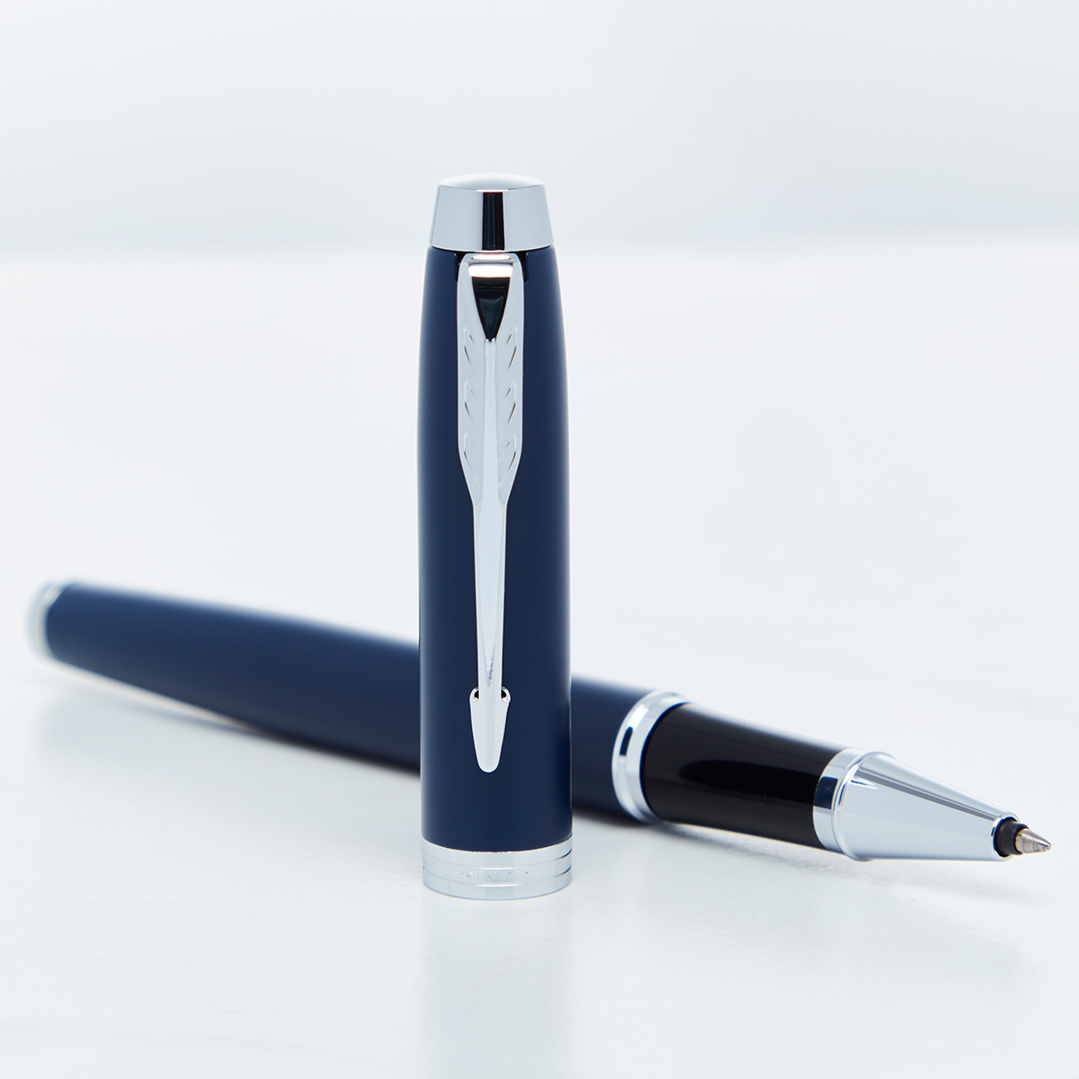 The Parker IM Blue Chrome Trim Rollerball Pen is designed to impress, combining contemporary style with reliable performance. Its weighty metal construction ensures a premium feel, while the dusky blue lacquer contrasts beautifully with polished chrome trim for a sophisticated, modern look. With smooth ink flow and Parker’s renowned craftsmanship, this rollerball pen makes everyday writing a pleasure.