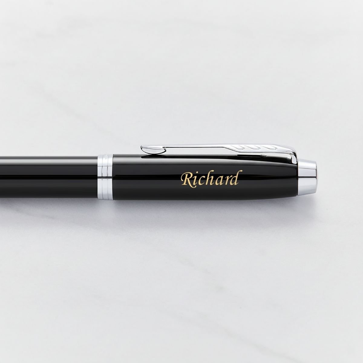 Select 'personalise this gift' to see a live preview. All of our Parker pens are laser engraved in house at our Nottingham workshop.